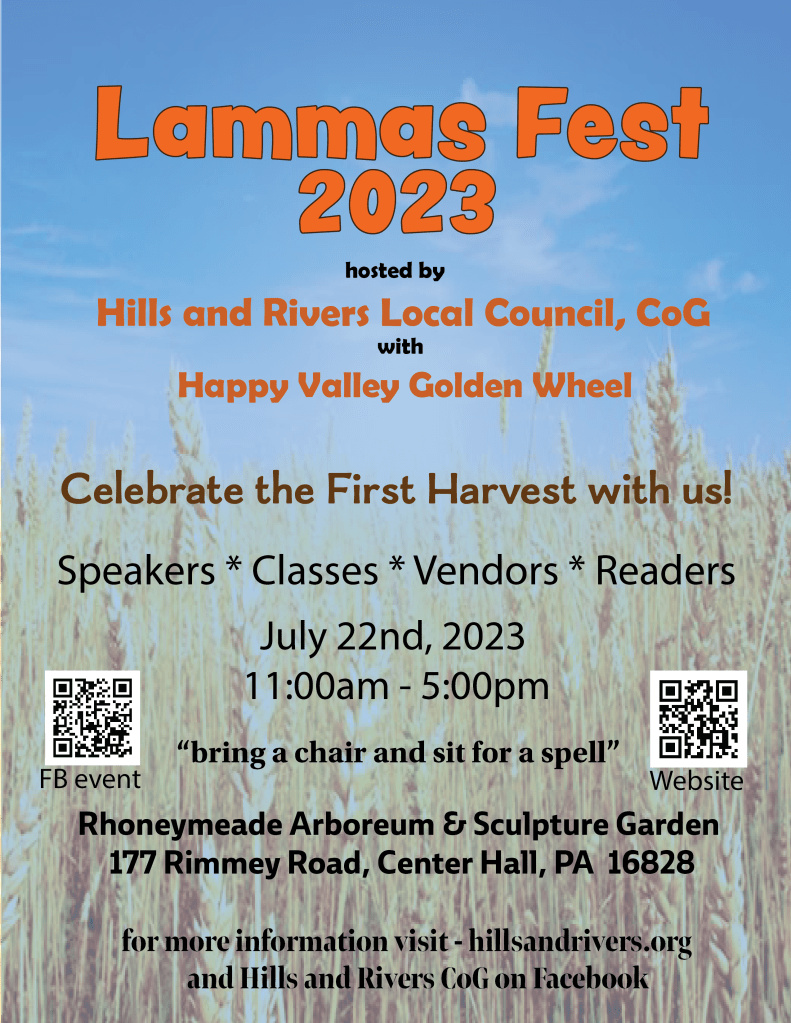 2:00 – Q & A on Hills and Rivers and Covenant of the Goddess – panel of Hills and Rivers members chat about what Hills and Rivers does locally and the mission of their national organization, Covenant of the Goddess. During this time there will also be a walk to the nearby labyrinth.